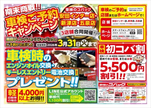 車検のコバック 新津店・安田インター店・五泉店株式会社タカラ自動車