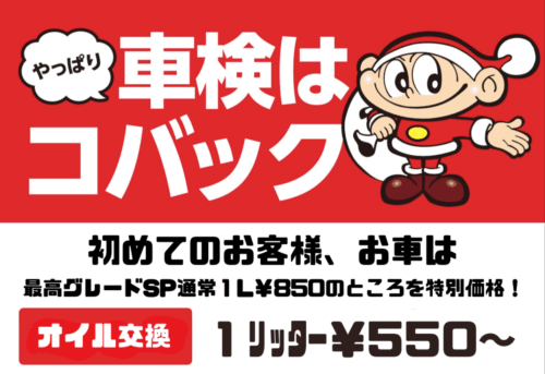 誠に勝手ながら12月29日から1月5日まで冬季休業を頂きます。 ご不便をおかけいたしますがご理解のほど何卒よろしくお願いいたします。 なお新年の営業は、1月6日から通常営業いたします。 新年1月6日より一日車検ご予約キャ […]
