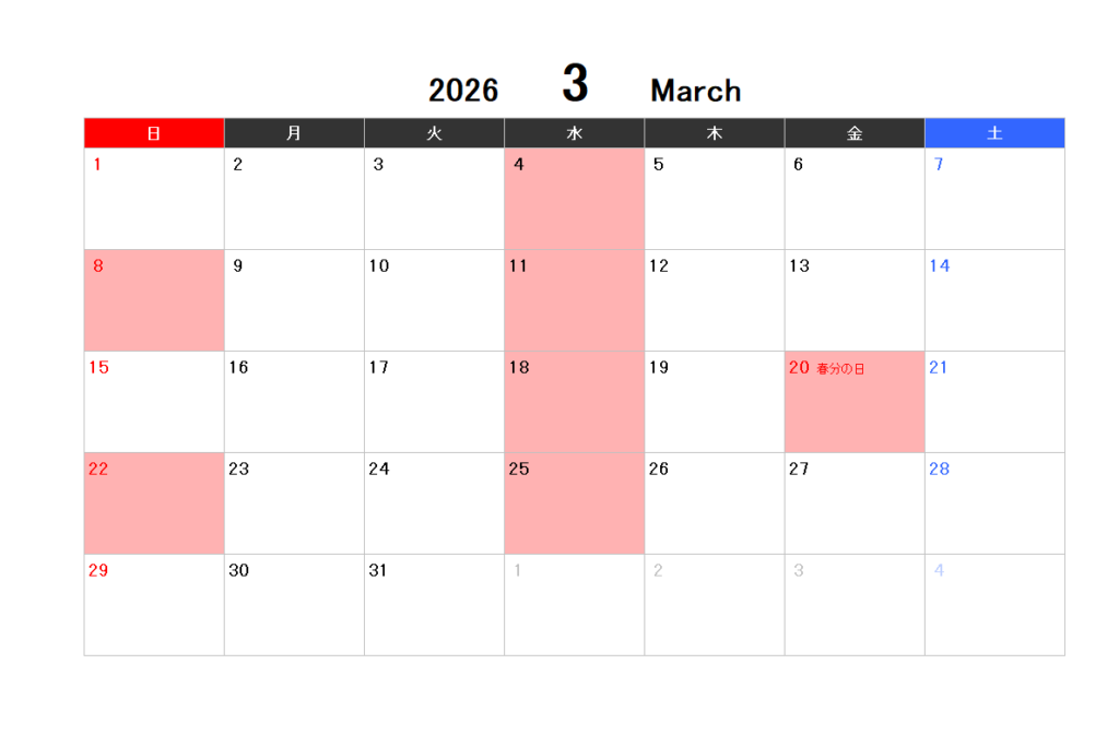 コバック安田IC店の3月のお休みをお知らせいたします。